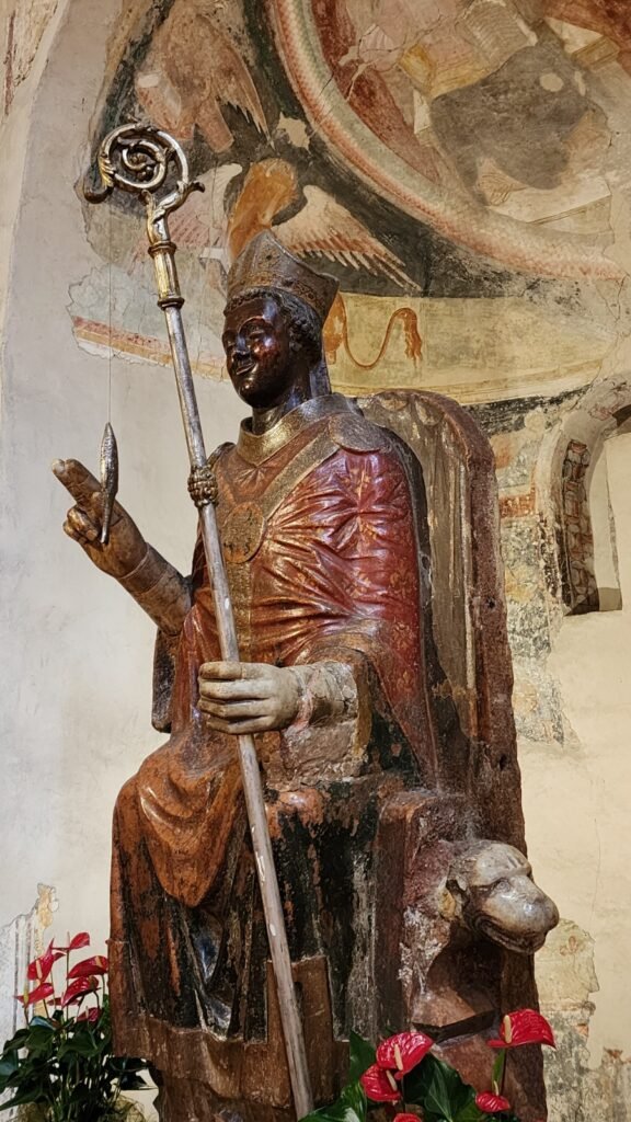 O interior da Basílica de San Zeno tem a mesma forma de 1.138, com exceção do teto gótico em madeira e do ábside. Divide-se em três níveis: a igreja paroquial, a cripta e o presbitério (altar). São tantos elementos para ver que me perdi: afrescos, esculturas, o maravilhoso teto decorado…