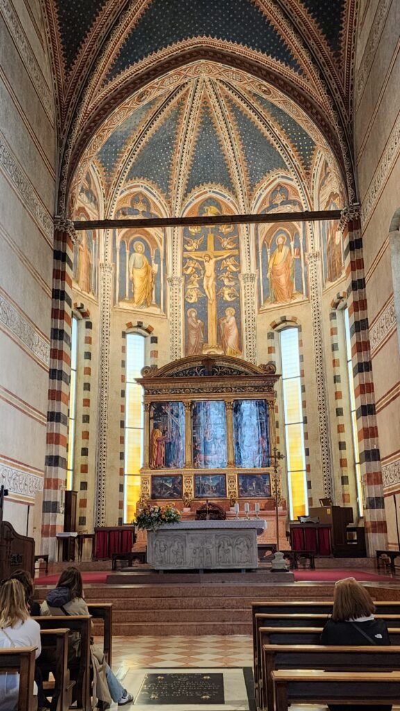 Neste artigo, te levo pelas quatro igrejas mais importantes de Verona — cada uma com sua personalidade, sua atmosfera e detalhes que fazem a visita valer a pena. Caso você não tenha tempo para ir em todas, espero que a descrição e fotos que compartilho abaixo te ajudem a escolher uma ou duas.