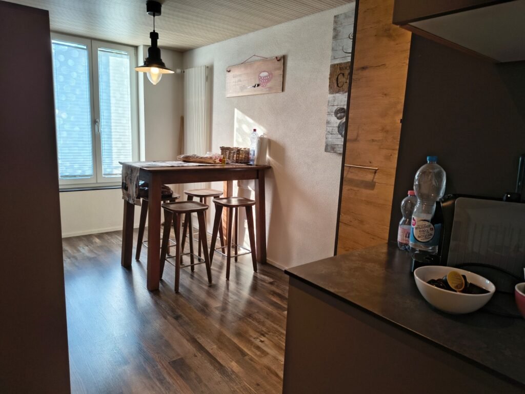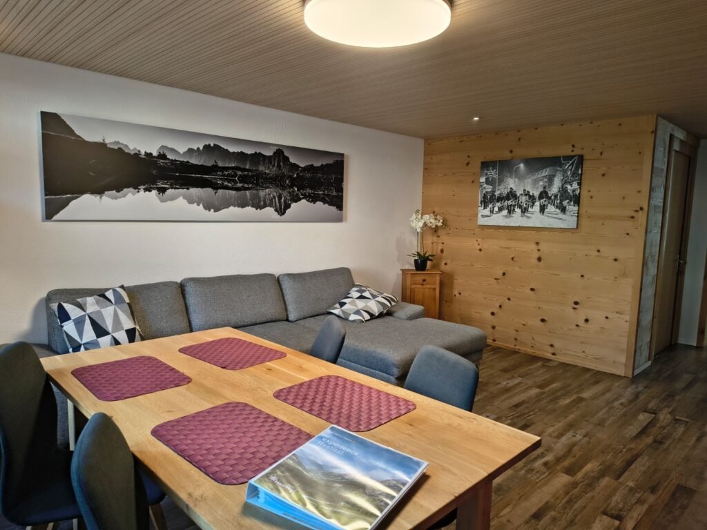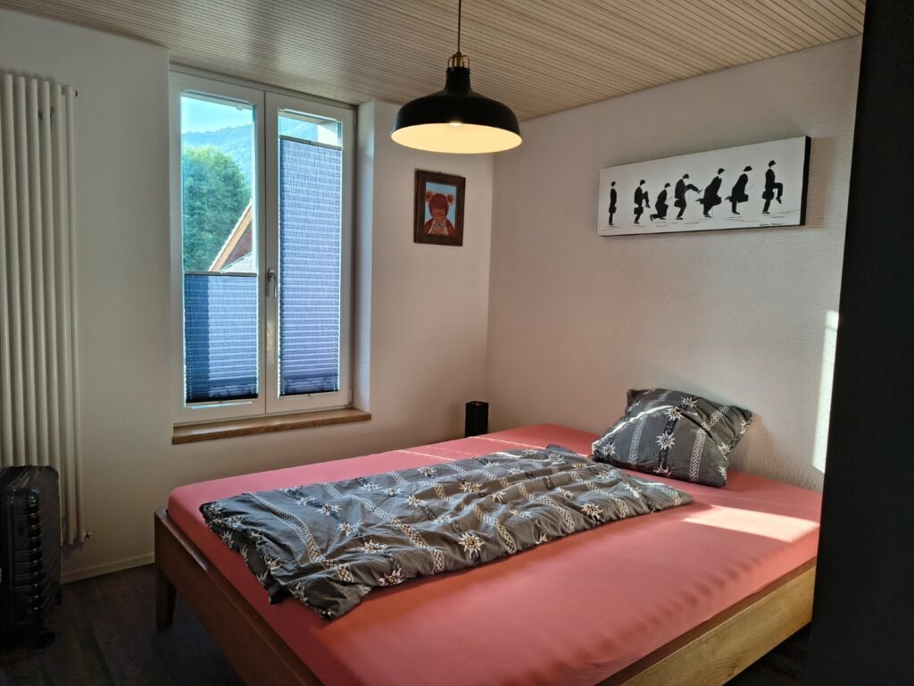 Eu preferi alugar um apartamento para minha família, na rua simpática da igreja de Meiringen.
